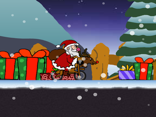 In dit spelletje zit de kerstman op een BMX. Scoor samen met hem zoveel mogelijk punten.